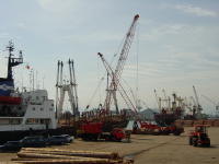 | ロシアからの原木および製材を取り扱っております。本船荷役はもちろん、くん蒸 作業(原木を農薬により消毒する作業のこと)、一時保管、さらに出荷時の積み 込み、配車、納入までを行っております。 |